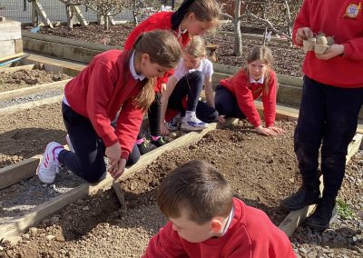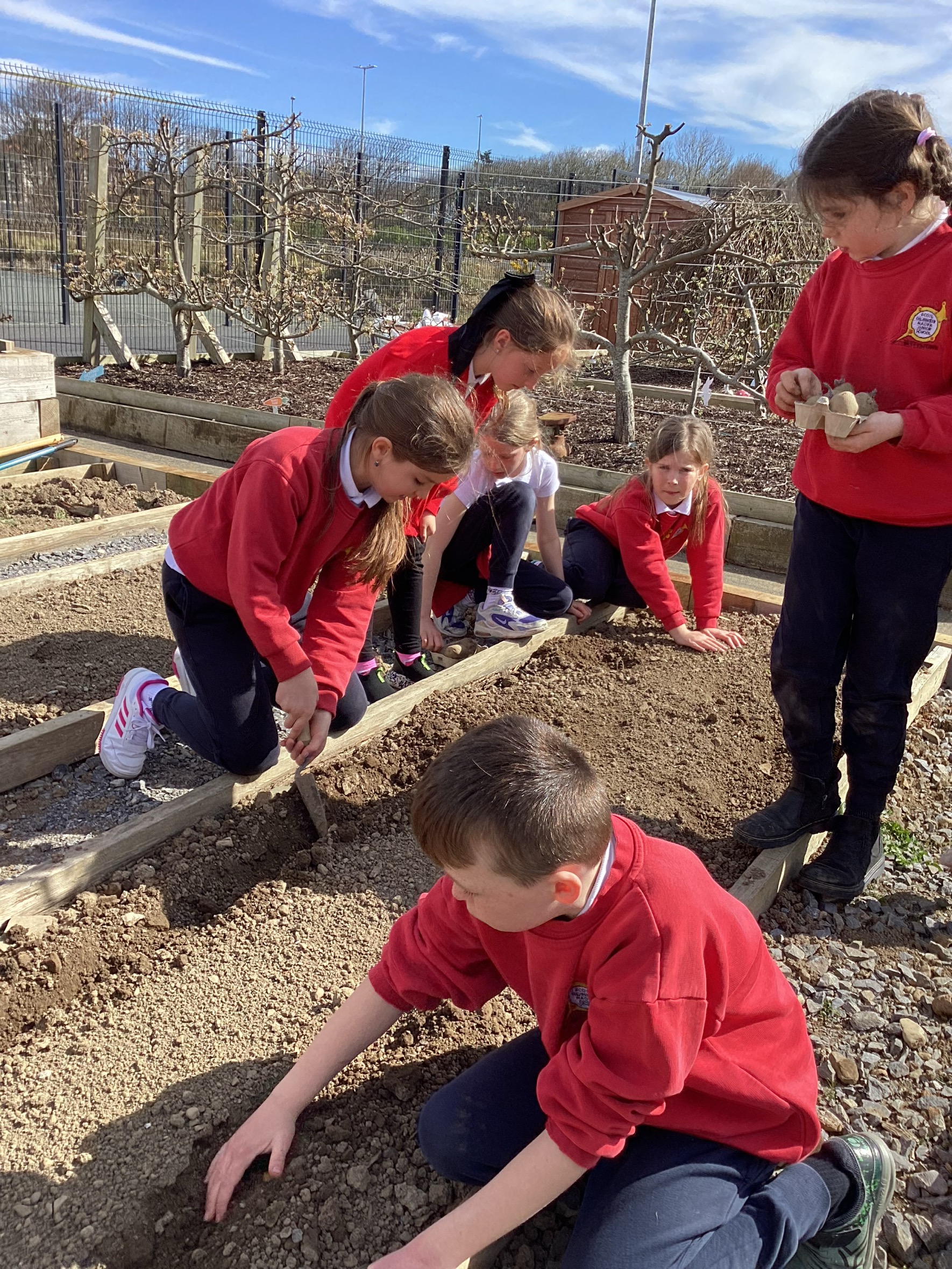 The children have been busy planting potatoes and different seeds. With the beautiful weather, they’ve been making sure to water them regularly. They can’t wait to see the results of their hard work!
