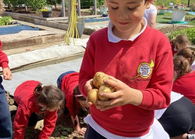 Every class got to harvest their potatoes; some even made chips with them. We have plated some surprises in the Garden, so we can’t wait to see how they grow over the summer!