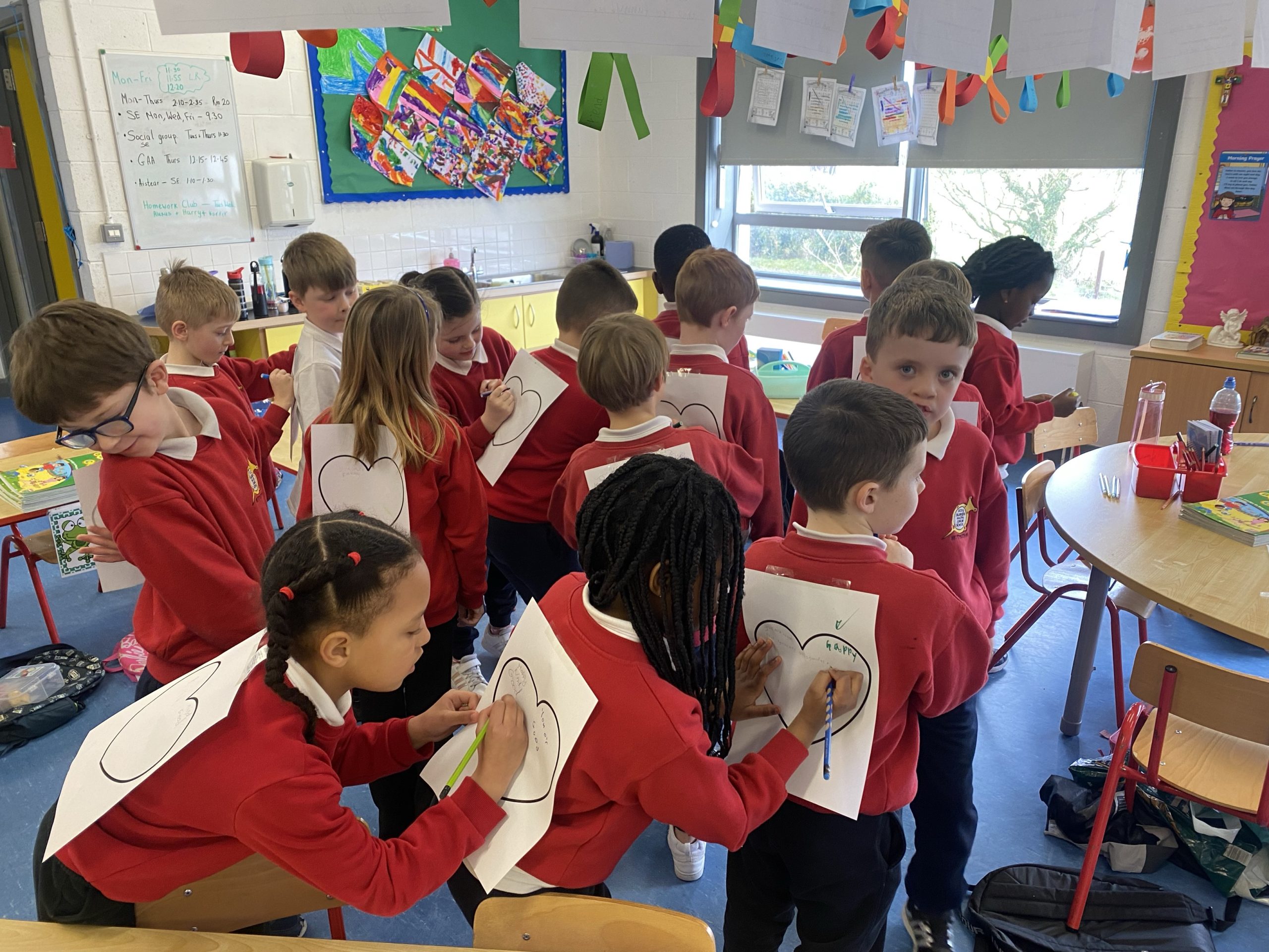 Ms. O’Neill’s class has been fostering a culture of kindness and positivity through the creation of Compliment Love Hearts as part of their involvement in the KiVa Anti-Bullying Program. The students dedicated their time and creativity to crafting beautiful hearts, each filled with thoughtful, encouraging words for their classmates.