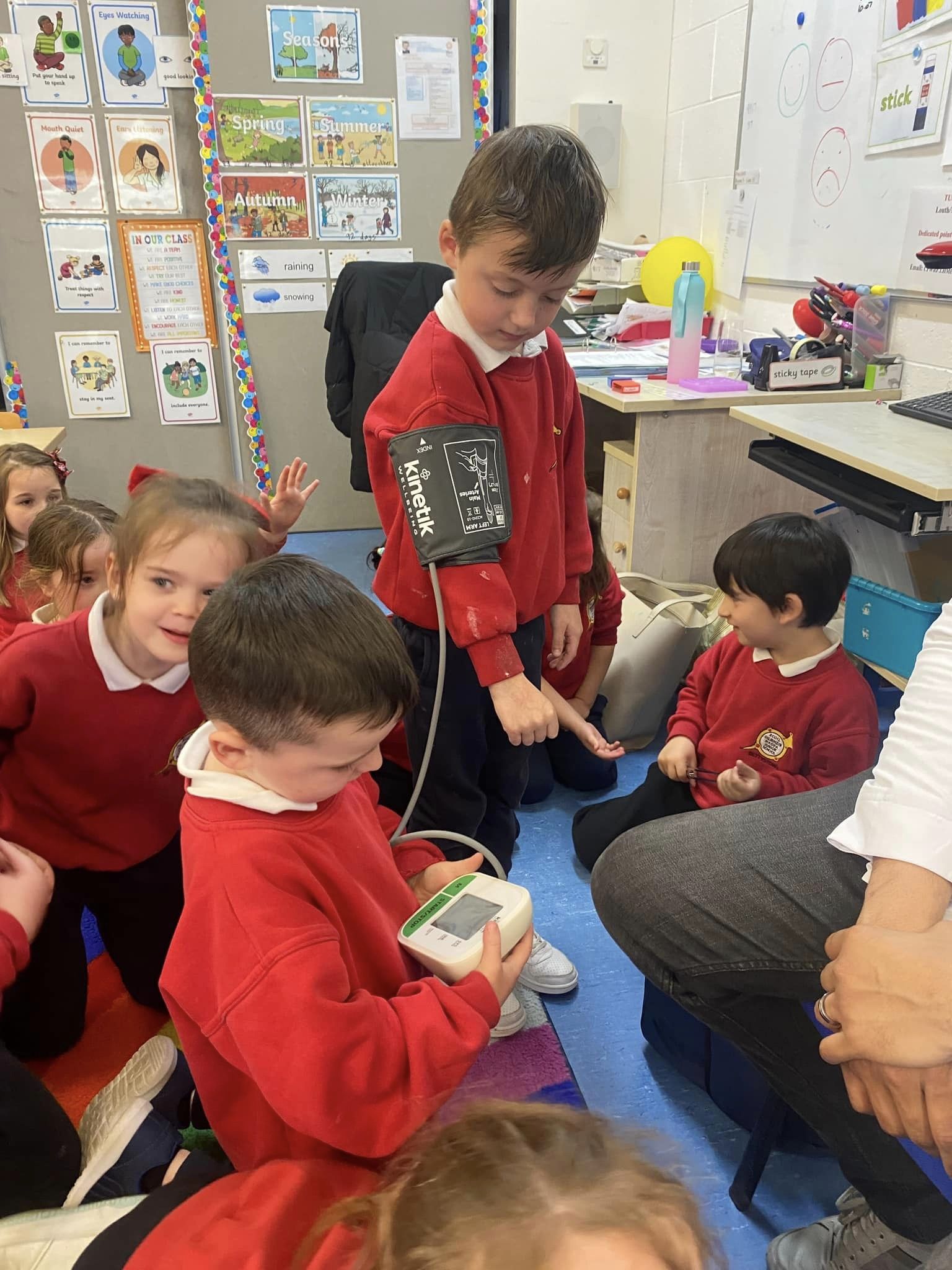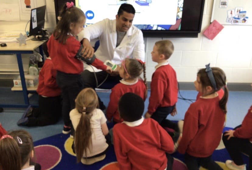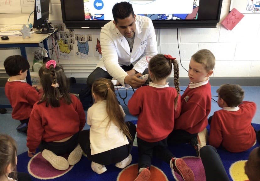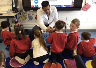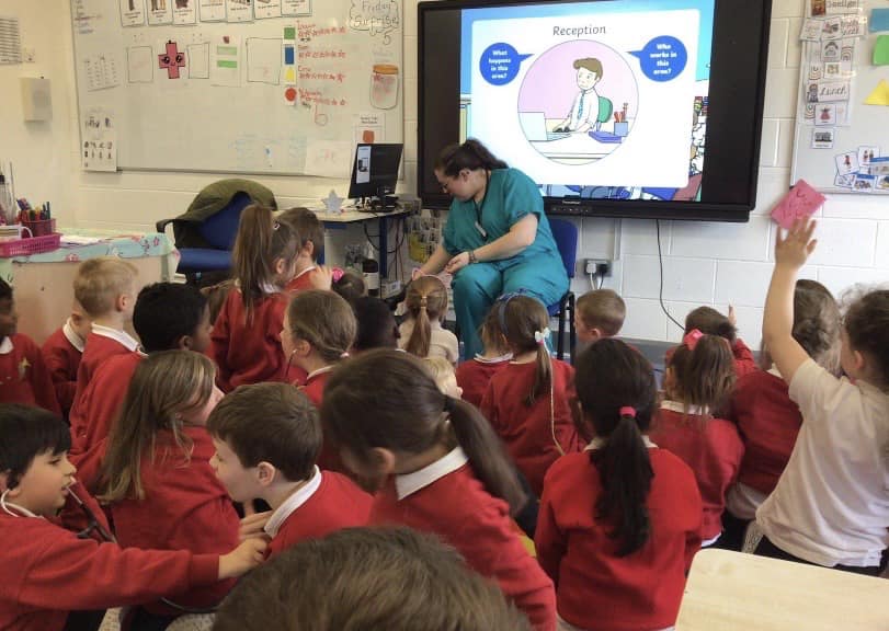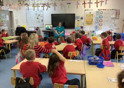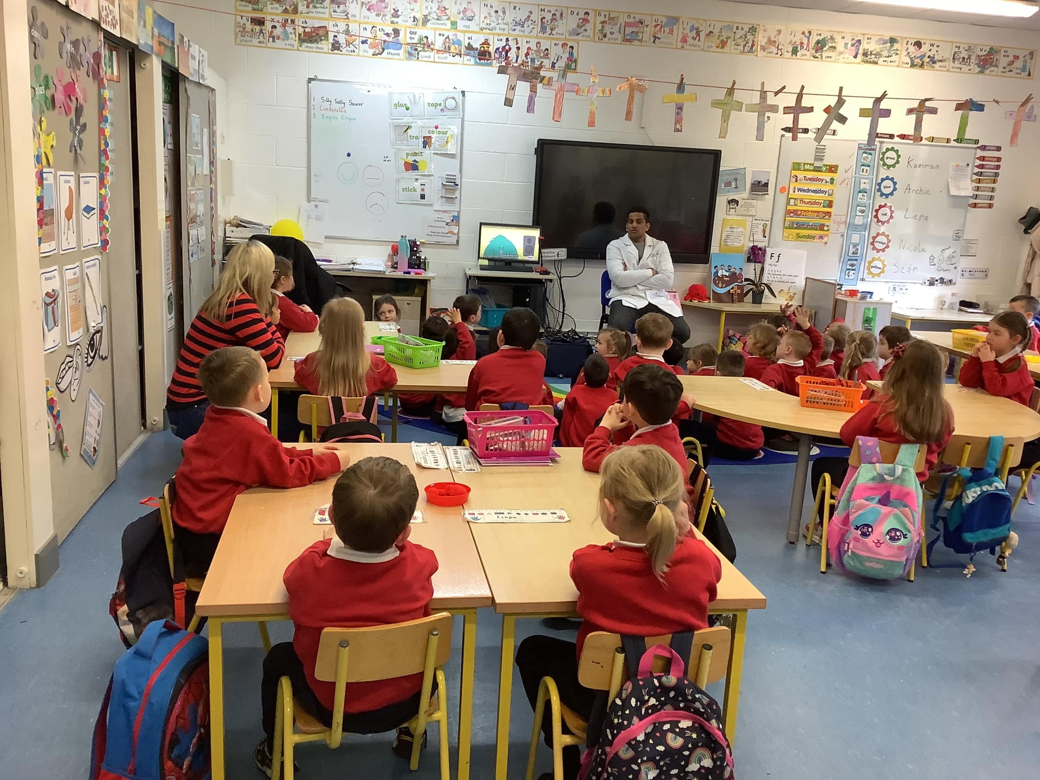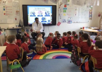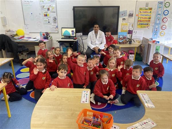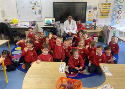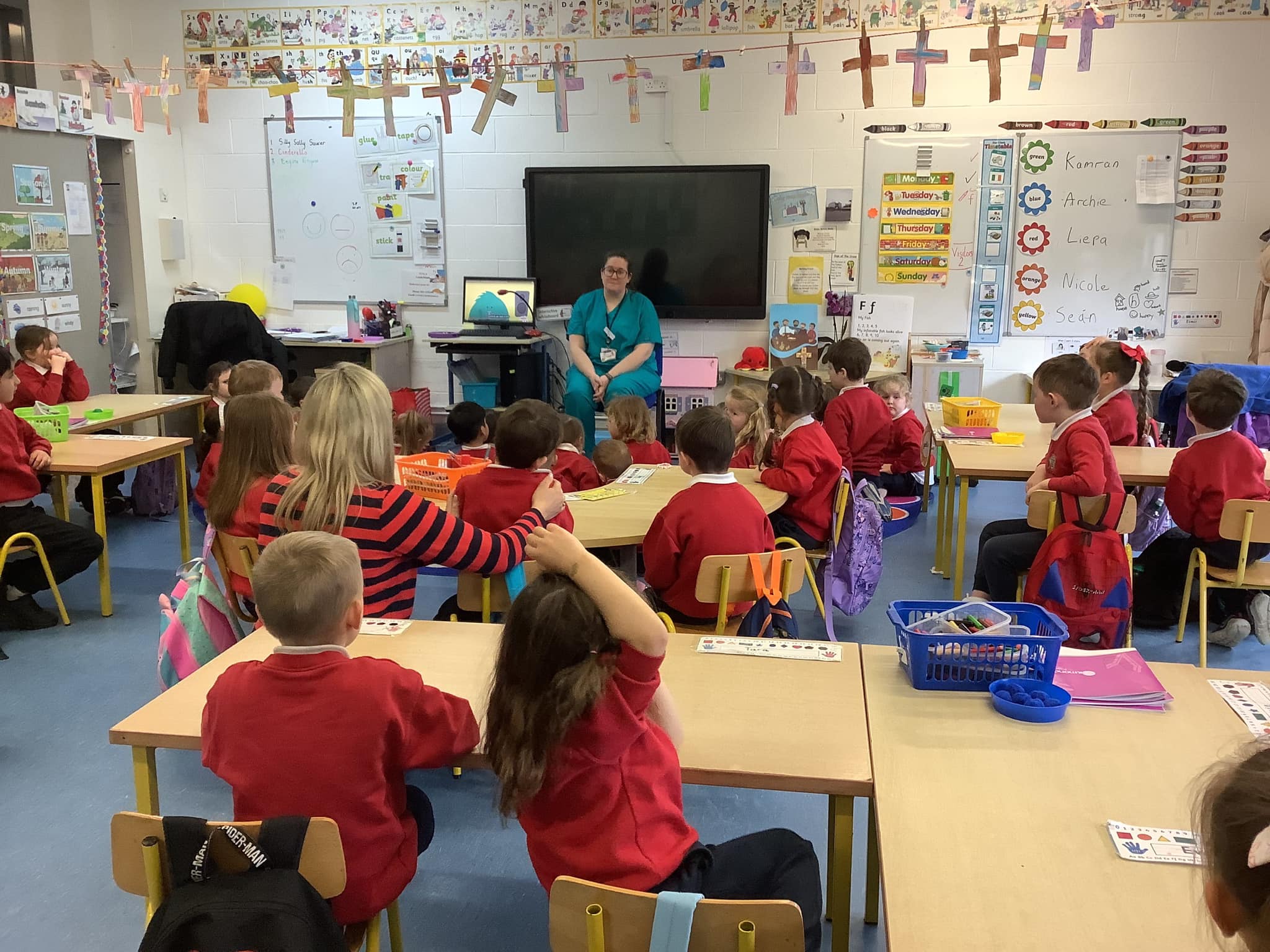 Junior Infants have been learning about people who help us. A big thank you to two of our parents who came in to talk to the children. Nurse Aoife talked about how she helps people in the community and Dr. Naidoo talked about being a GP! The children enjoyed asking them questions and hearing how they help people!